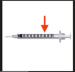 Insert the needle straight through the center of the rubber stopper on the vial.