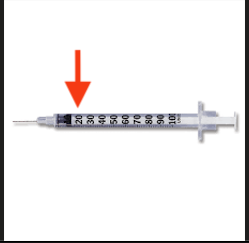Pull the plunger back to the mark that corresponds with your dose (e.g., 20 units for a 20mg dose). This draws air into the syringe.